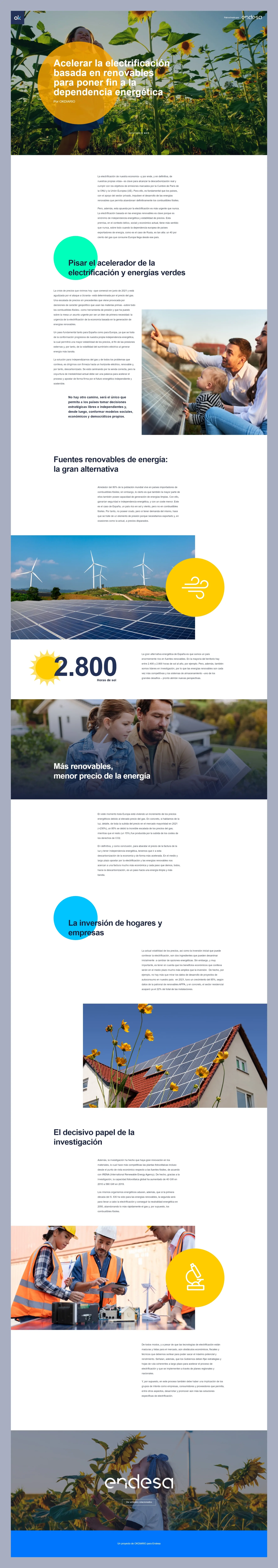 Diseño web para la empresa Endesa. Se trata del diseño de una serie de branded content publicados en el diario digital OKDIARIO